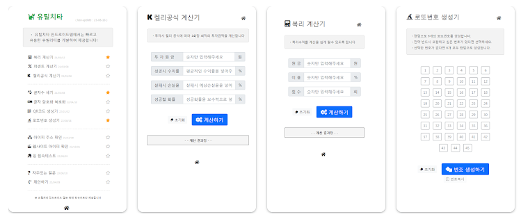 복리 계산기,켈리공식 계산기, 글자수세기 그외 유틸리티 제공