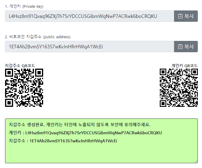 이렇게 생성된 비트코인 지갑 주소는 따로 보관하거나